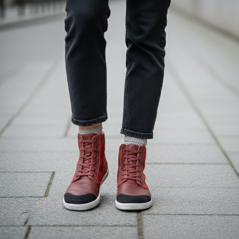 CHICAQO Red ist Dein neuer Barfußschuh, der mit seinem antiken roten Finish ein absolutes Unikat ist.