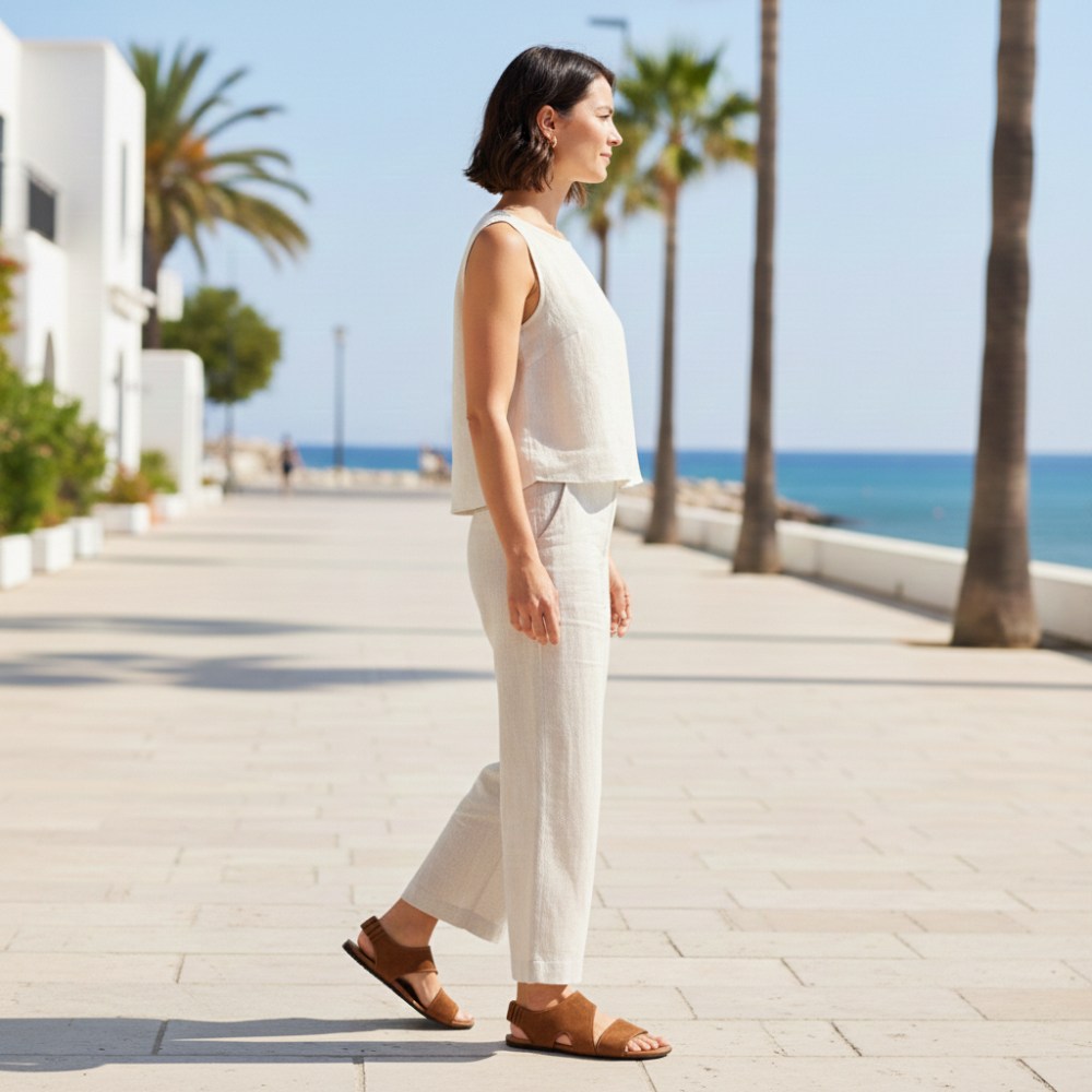 Ob Du einen entspannten Tag am Strand planst, durch die Stadt bummelst oder ein lässiges Sommerfest besuchst, CISQA Brown ist die ideale Wahl. Sie lassen sich hervorragend mit einer Vielzahl von Sommeroutfits kombinieren – von leichten Kleidern und Röcken bis hin zu Shorts und Caprihosen. Das warme Braun des Veloursleders harmoniert wunderbar mit natürlichen und erdigen Tönen, kann aber auch als sanfter Kontrast zu helleren Farben dienen.