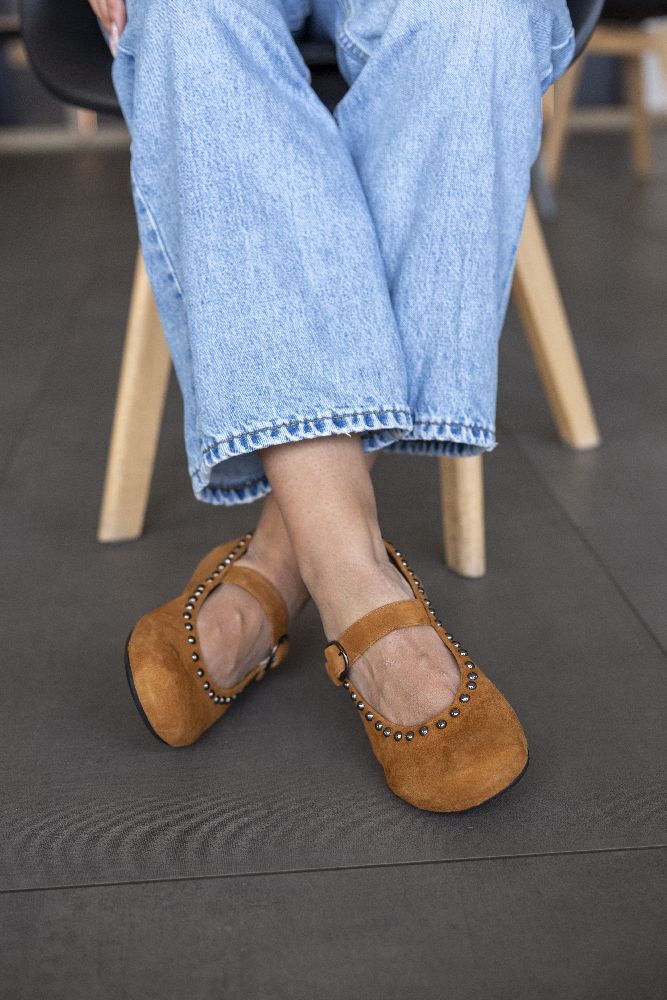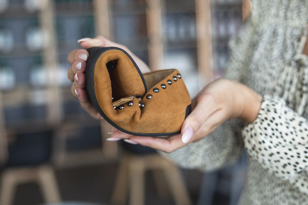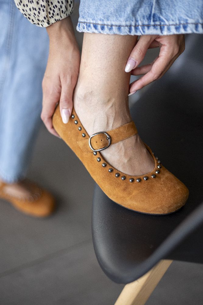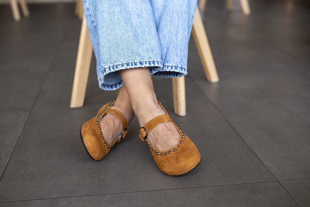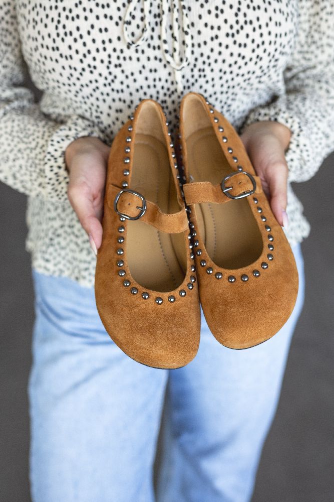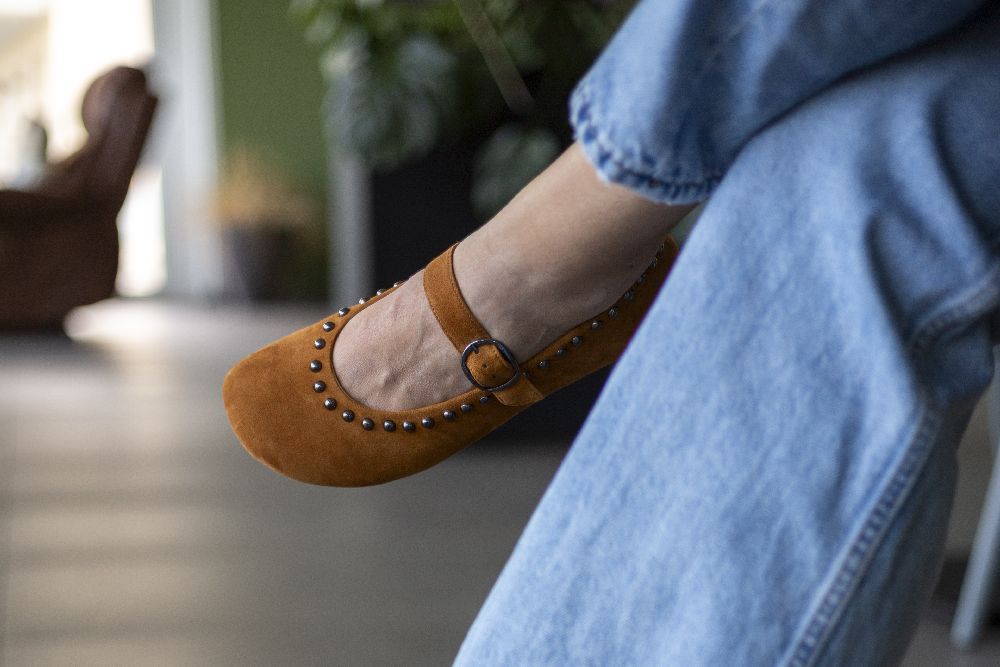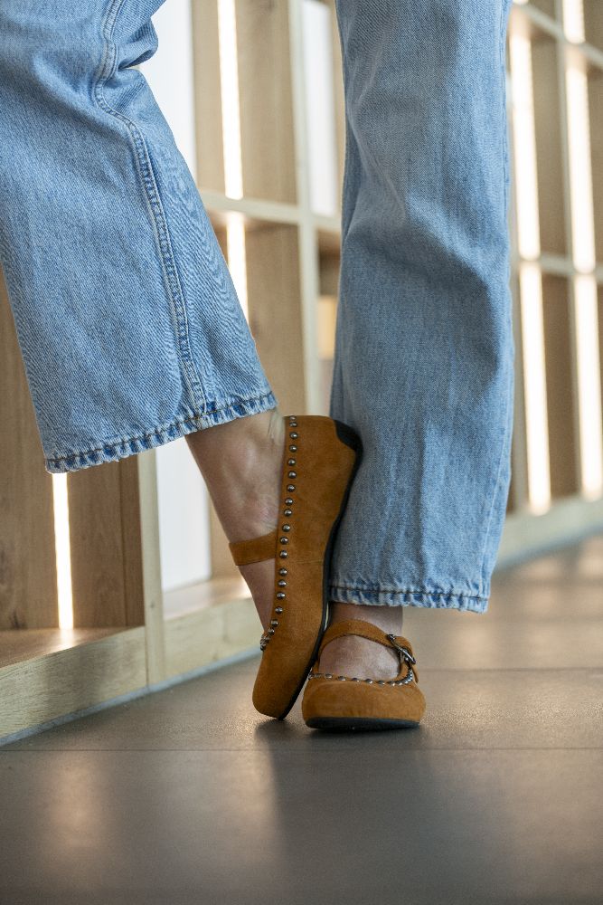 Unser DIEQO Brown ist unser brandneuer Ballerinaschuh aus braunem Veloursleder. Dieses Schmuckstück ist mit runden Nieten gesäumt und verleiht jedem Outfit einen Hauch von Glamour, ohne dabei auf den unglaublichen Komfort zu verzichten, den Du von unseren Barfußschuhen gewohnt bist.