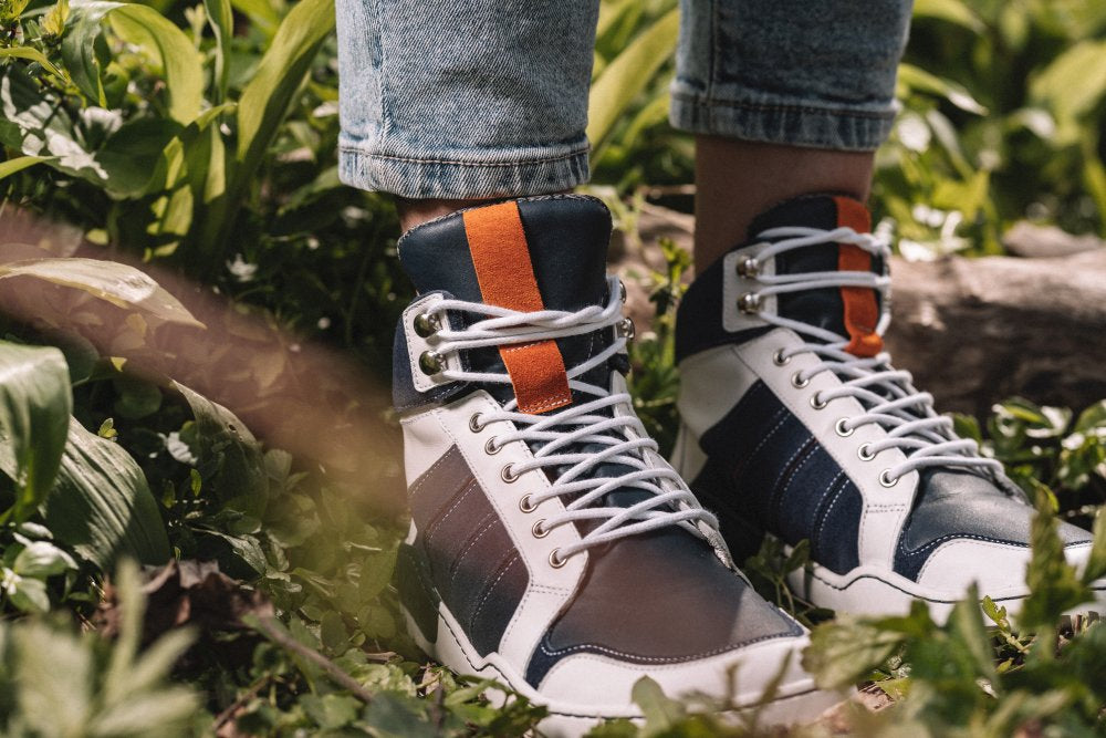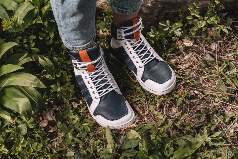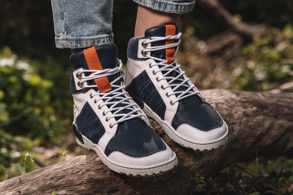 Feines Nappaleder in weiß und blau, welches mit feinem Veloursleder an den Seiten abgesetzt ist, gibt diesem Outdoorschuh den frischen Look. Einmal angehabt, willst Du keinen anderen Wanderschuh mehr tragen. Herrlich leicht und anschmiegsam wirst Du diesen Barfußschuh kaum an Deinen Füßen spüren.