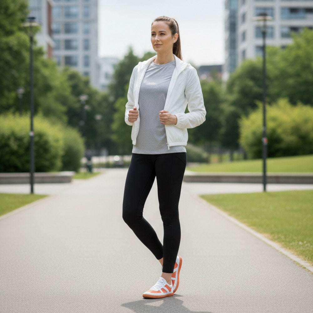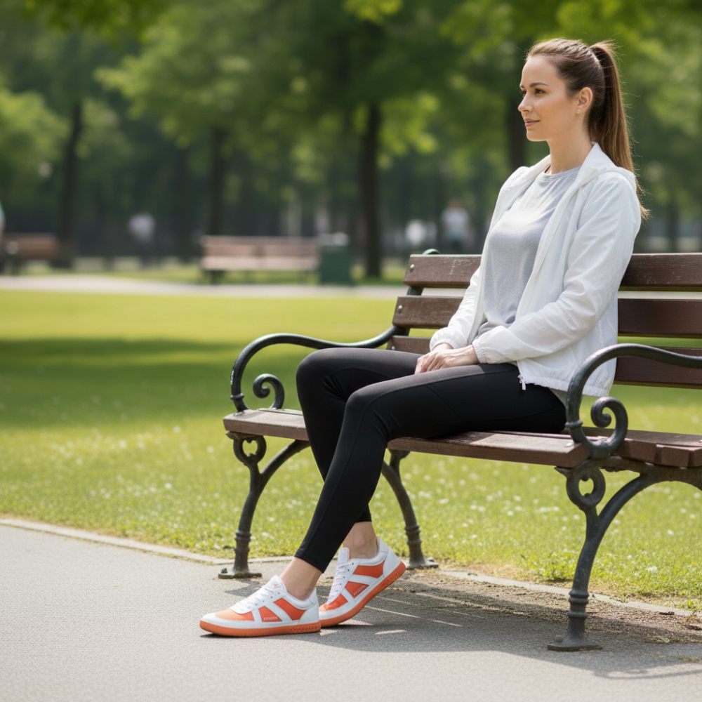 Der Barfuß-Sneaker sorgt mit seiner Farbkombination aus Weiß und Orange für den extravaganten Auftritt. Das macht ihm keiner so schnell nach. Trotzdem ist OAQLEY überhaupt nicht aufdringlich, das Design ist schick und topaktuell.