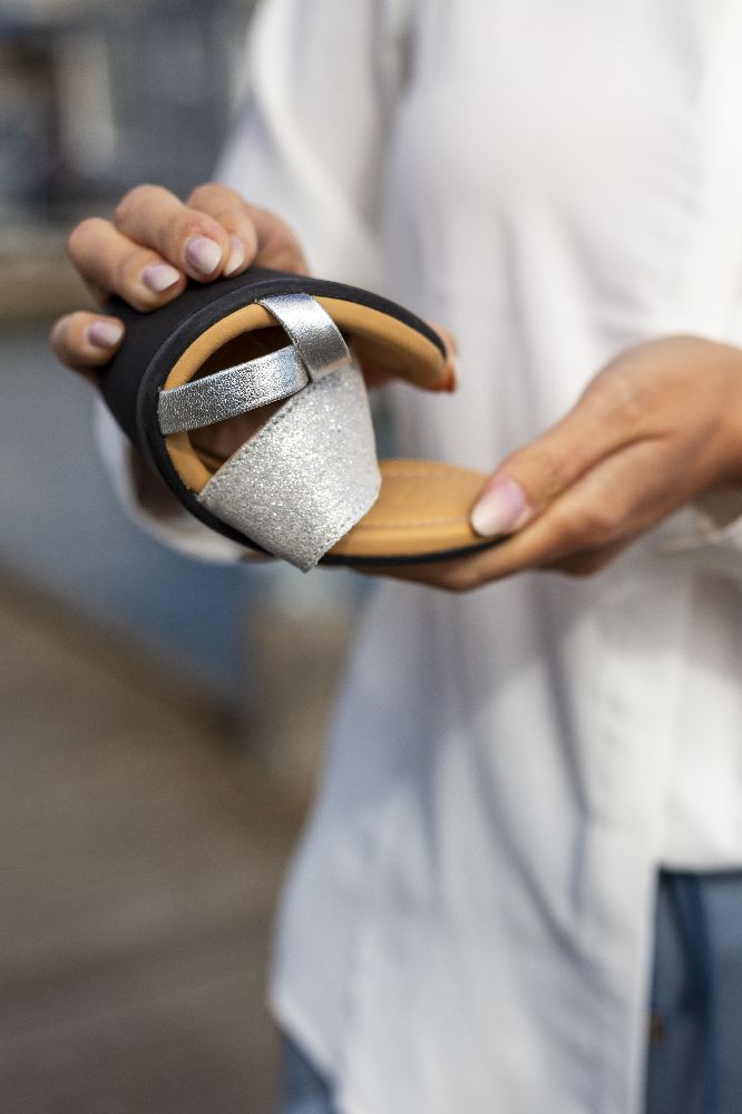 Die QATE Silver White vereinen Eleganz und das unbeschwerte Gefühl des Barfußlaufens in einer stilvollen Sandale. Ihr einzigartiges Design mit zwei zarten silbernen Riemen vorn und einem breiteren weißen Riemen über dem Spann bietet nicht nur einen Blickfang, sondern garantiert auch einen sicheren und bequemen Sitz. Das Zusammenspiel von Silber und Weiß verleiht diesen Sandalen eine frische und zugleich edle Ausstrahlung, die perfekt zu verschiedenen Anlässen passt.