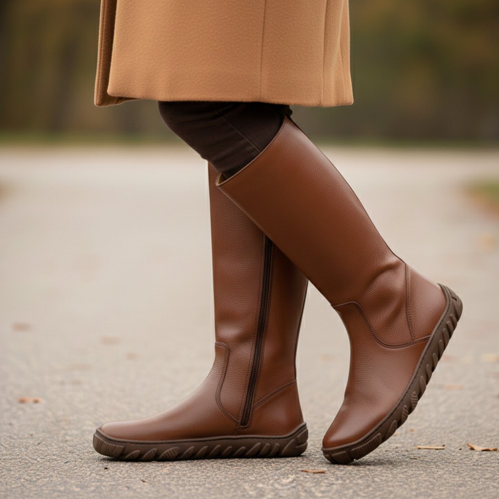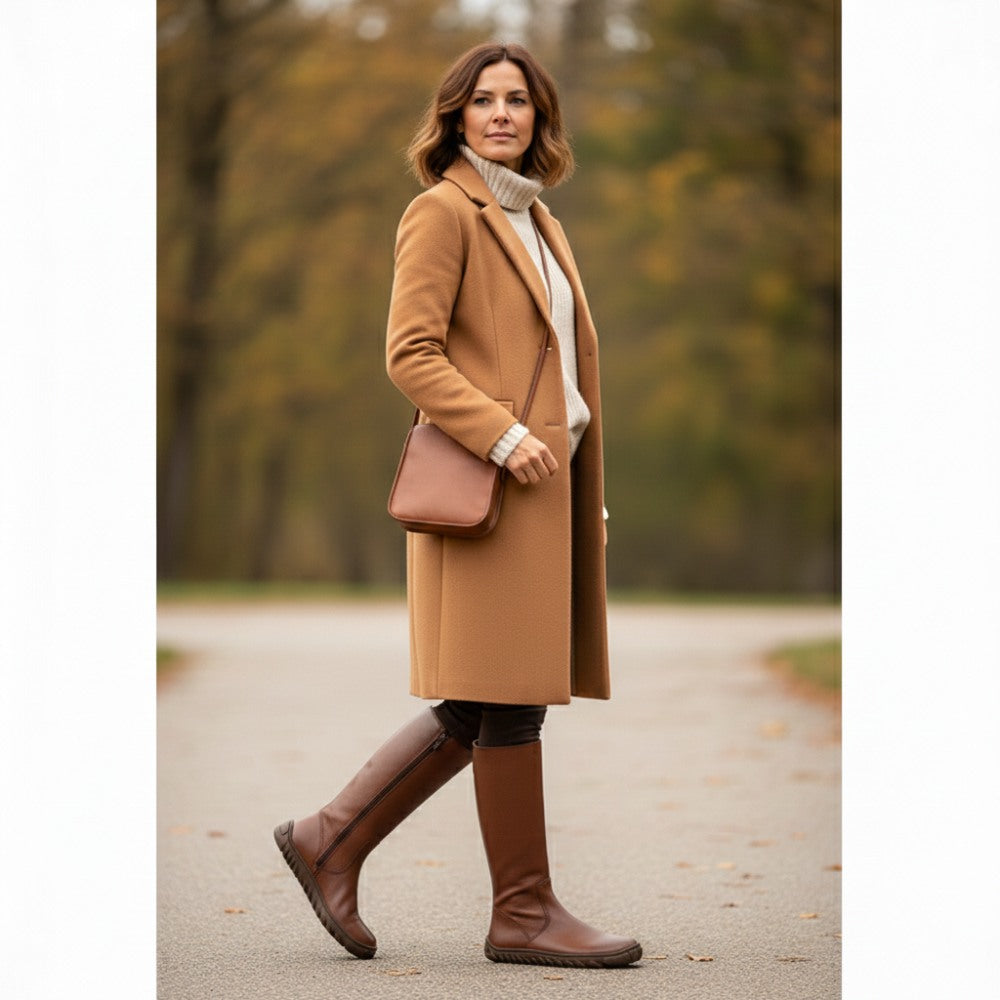 QAZZ Brown ist Dein neues Must-have, da diese Stiefel Eleganz mit dem Komfort von Barfußschuhen verbinden. Ihr schlichtes Design in einem warmen Braunton macht sie zu einem vielseitigen Begleiter, der sich mühelos in jeden Look einfügt. Gefertigt aus erstklassigem Nappaleder, stehen diese hohen Stiefel nicht nur für Stil, sondern auch für Qualität, die lange hält.