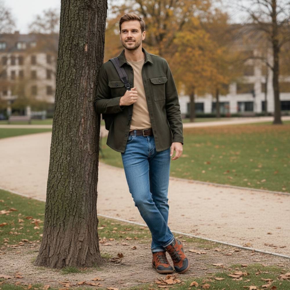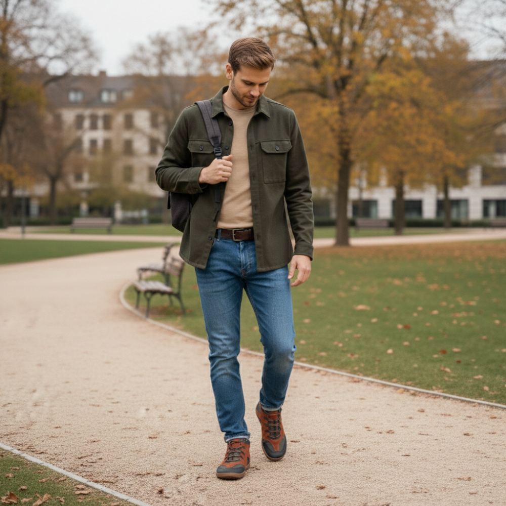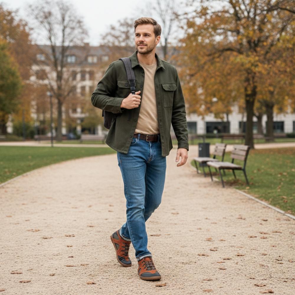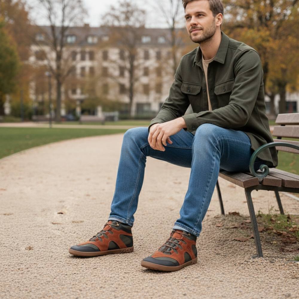 QINSLEY Brown ist der halbhohe Barfußschuh für Herren, der durch höchsten Tragekomfort und modernes Design überzeugt.