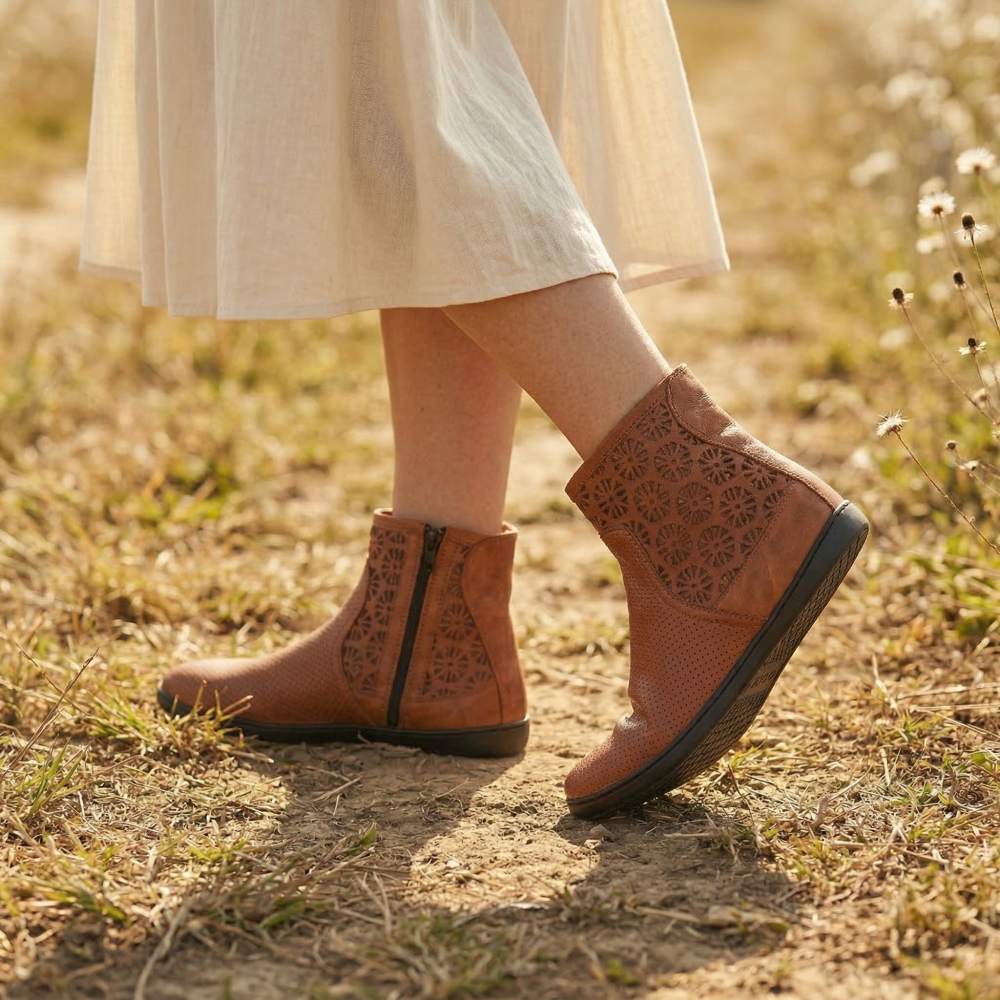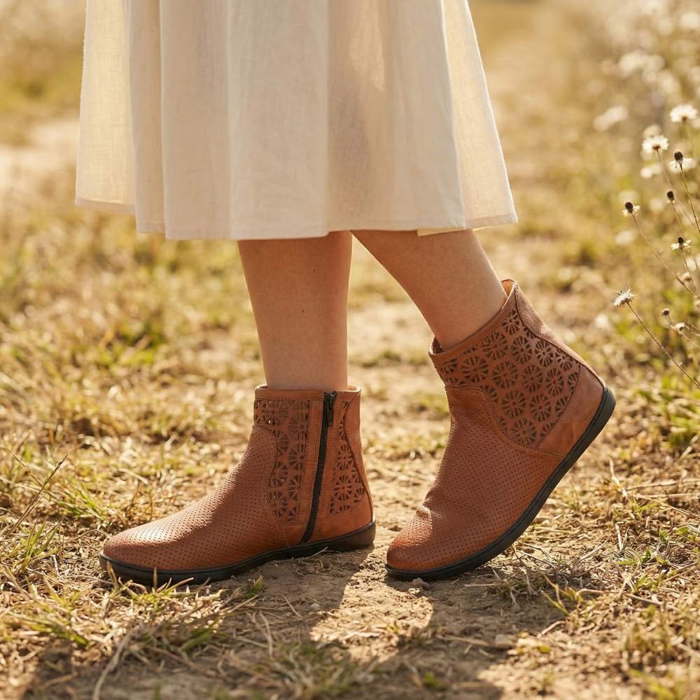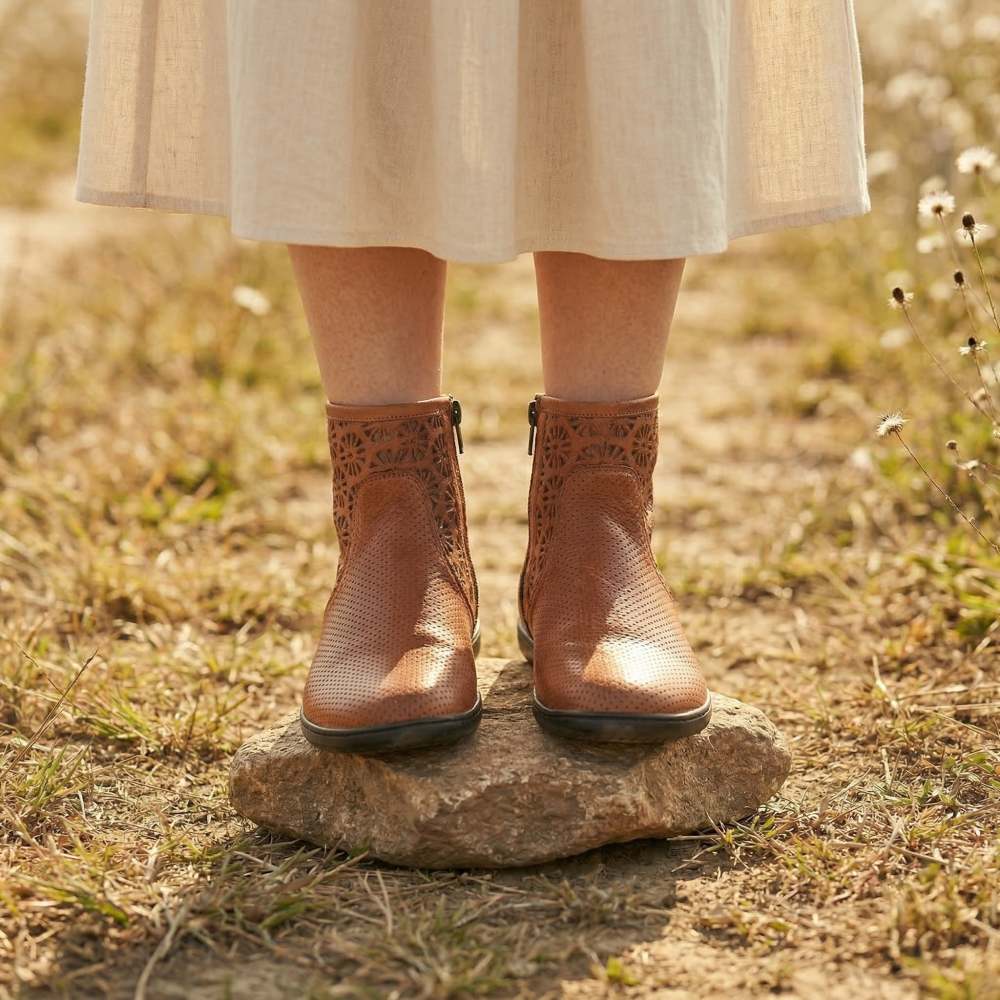 Ein Sommerboot, der besonders luftig ist und den Du von Frühling bis Herbst tragen kannst: unser QYLIE Cognac!
