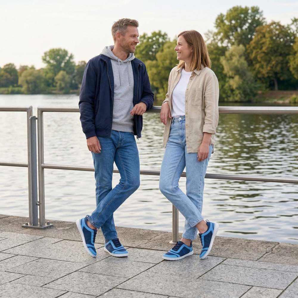 Die schicken Blautöne und das asymmetrisch angebrachte Schnürsenkelschloss sorgen für ein supermodernes Design. Ob zur Jogginghose oder zur eleganten Chino – mit SQILL hast Du einen passenden und bequemen Barfußschuh, der Dich immer ans Ziel bringt.