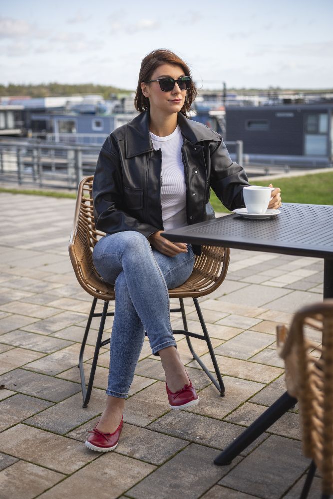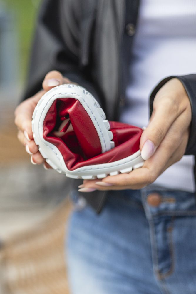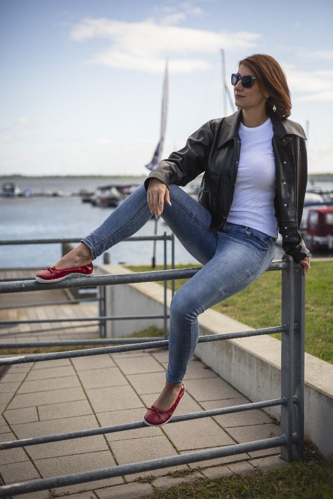 Das feine, dunkelrote Glattleder und die dezente Schleife geben dem Ballerina einen zarten, femininen Look. Durch die gebrushte Sneaker-Sohle sieht er sportlich, frisch und modern aus. Die Barfußsohle sorgt aber auch für guten Grip und ist gleichzeitig so dünn und flexibel, dass Deine Füße bei jedem Schritt den Boden spüren.